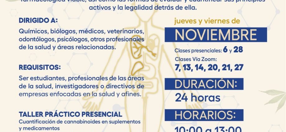 Uno de los grandes diferenciales de este curso es el Taller Presencial de Analítica de Cannabinoides, que se llevará a cabo en las instalaciones del Instituto de Química de la UNAM. Los participantes aprenderán a cuantificar cannabinoides en suplementos y medicamentos, brindando una experiencia práctica invaluable.
